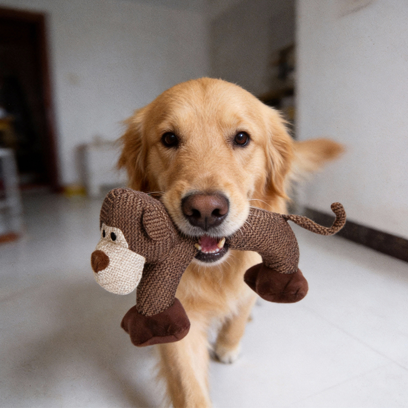 My dog destroys most plush toys in minutes when I leave the house. The monkey surprised me. Instead of ripping it apart, he chews slowly and stays in one spot. It’s still intact weeks later — and he’s noticeably calmer when I’m gone. This one actually changed his routine. — Amanda R., OH